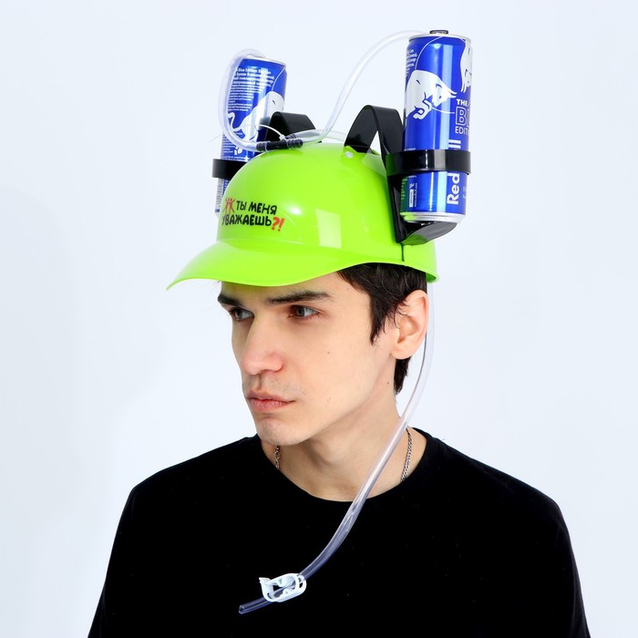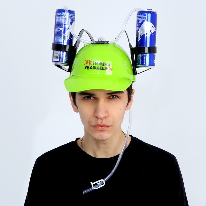 Для тех, кто привык совмещать практичность, оригинальную идею и красоту исполнения в одном аксессуаре, мы разработали каска «Ты меня уважаешь?!», с отверстиями под банки. Теперь ваши руки свободны для более важных дел, а любимый напиток всегда рядом и в любой момент доставит вам удовольствие! Каска «Ты меня уважаешь?!», с отверстиями под банки настоящая находка для тех, кто не хочет прятать свою индивидуальность за обычными скучными вещами. Оригинальная меткая надпись, дополненная подходящим рисунком, непременно обратит внимание публики на вас и вызовет и интерес окружающих. А каким замечательным подарком может стать такая полезная вещь!