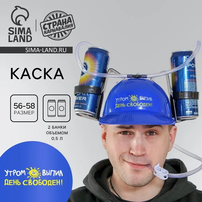 Каска «Утром выпил — день свободен», с отверстиями под банки, обхват головы 56-58 см — Характеристики