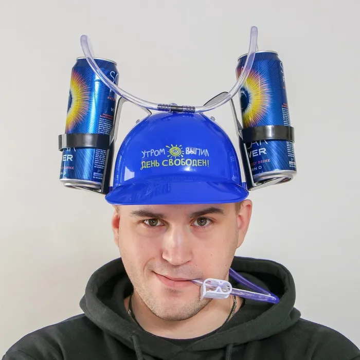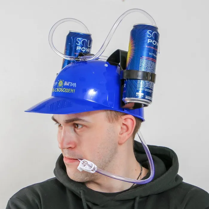 Для тех, кто привык совмещать практичность, оригинальную идею и красоту исполнения в одном аксессуаре, мы разработали каску с отверстиями под банки. Теперь ваши руки свободны для более важных дел, а любимый напиток всегда рядом и в любой момент доставит вам удовольствие! Такая каска настоящая находка для тех, кто не хочет прятать свою индивидуальность за обычными скучными вещами. Оригинальная меткая надпись, дополненная подходящим рисунком, непременно обратит внимание публики на вас и вызовет и интерес окружающих. А каким замечательным подарком может стать такая полезная вещь!