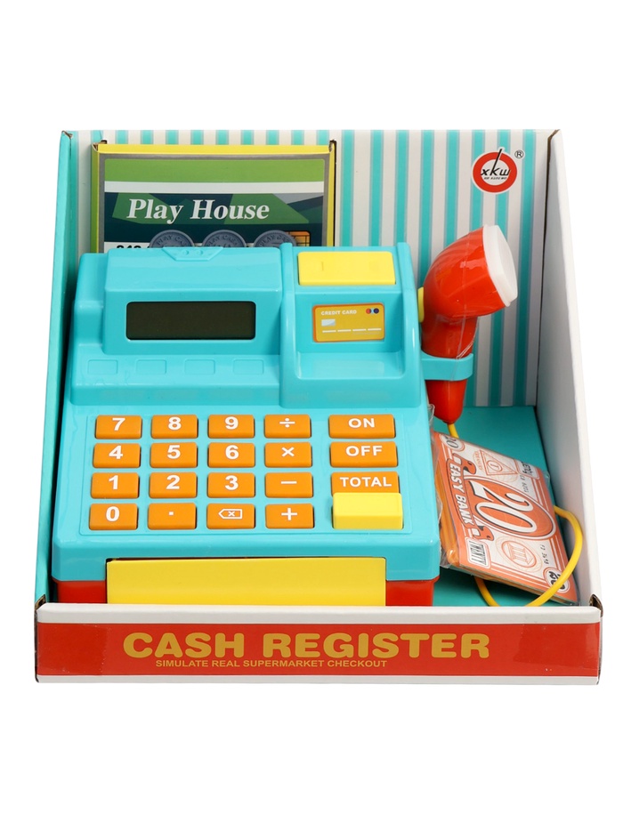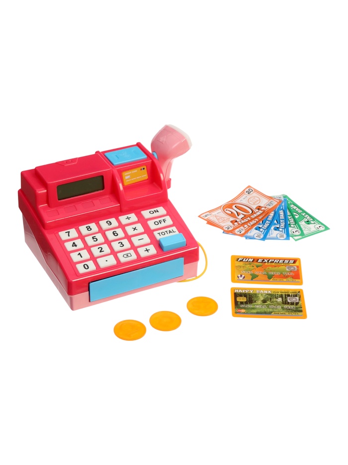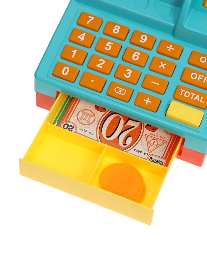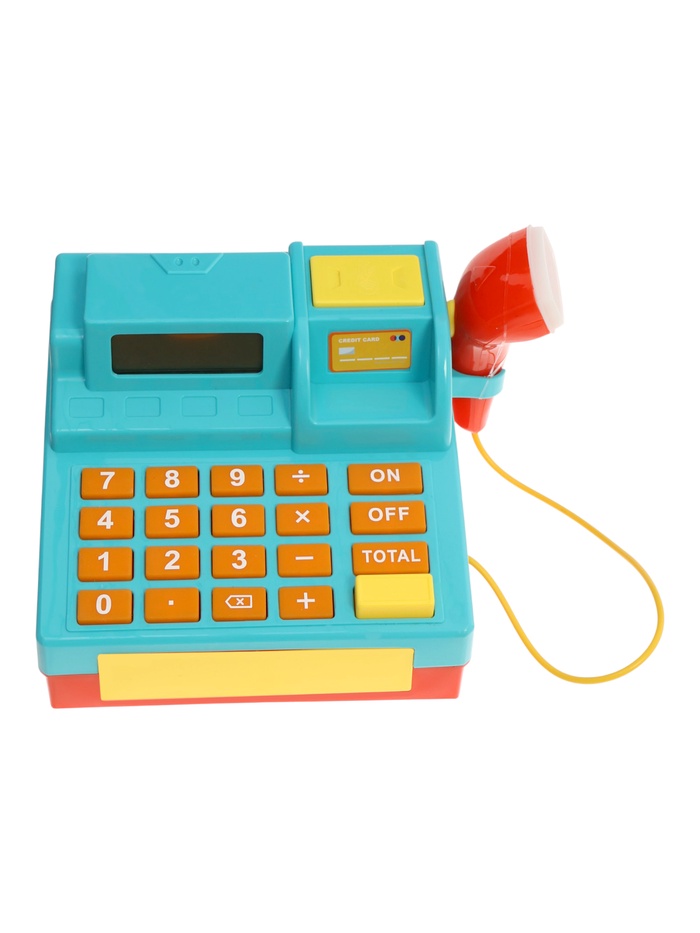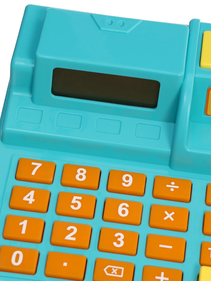 Кнопки калькулятора нажимаются, дисплей участвует в игре, а ручной сканер со звуковым сигналом делает процесс максимально похожим на настоящую кассу в магазине. Игровые деньги и карточки позволяют сразу начать игру без дополнительных аксессуаров.