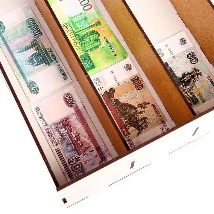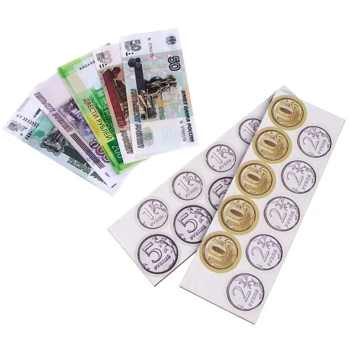 - Когда касса готова, сложите деньги, которые идут в наборе, в ящик.