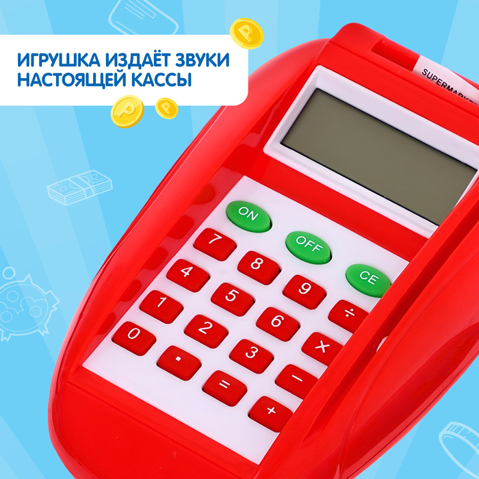 - Игрушка издаёт звуки настоящей кассы.