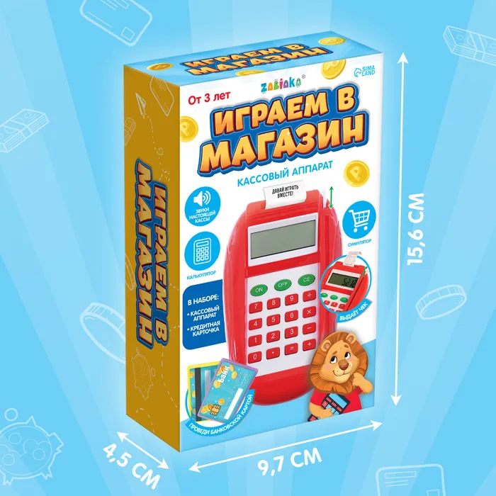 - В комплекте касса-калькулятор и банковская карточка.