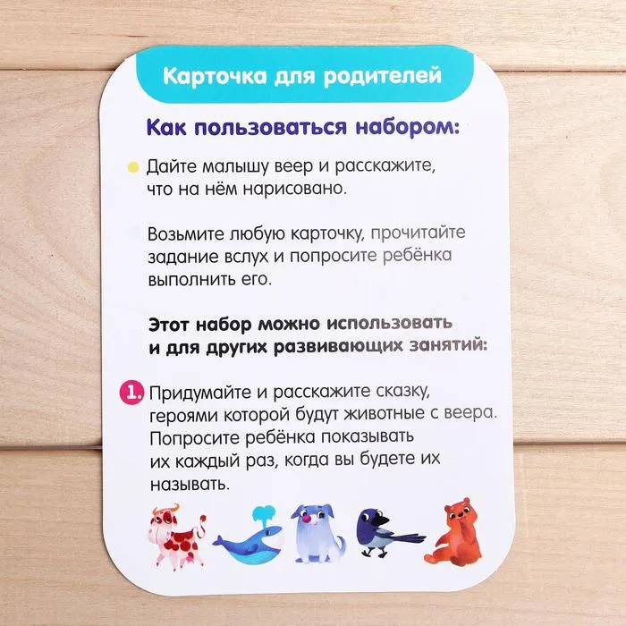 - Изобразите звуками и жестами животное с веера, а малыш пусть попробует отгадать.