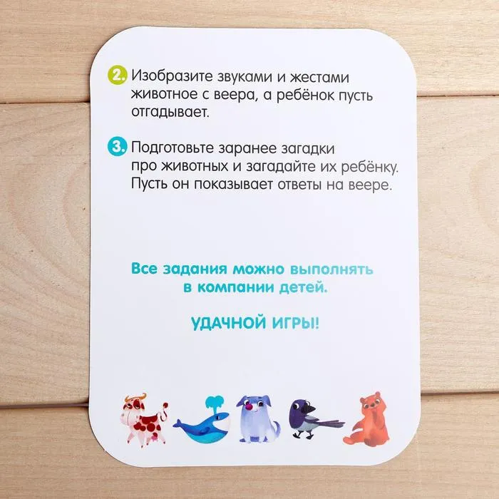 - Заранее приготовьте загадки про животных. Пусть ваш кроха попробует отгадать их и показать ответы на веере!