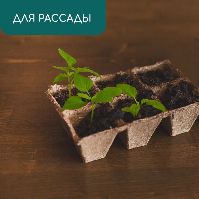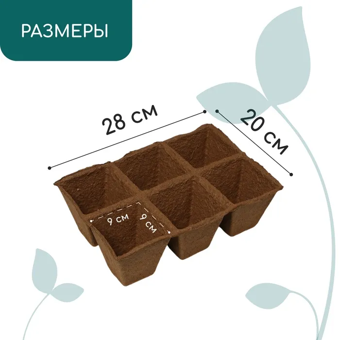 Кассета для рассады, 28 × 20 × 9 см, 6 ячеек по 400 мл, торф, 9 × 9 см — Характеристики