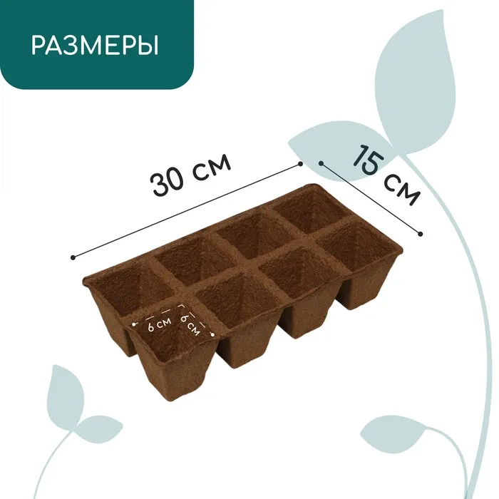 Кассета для рассады, 30 × 15 × 8 см, 8 ячеек по 150 мл, торф, 6 × 6 см — Характеристики
