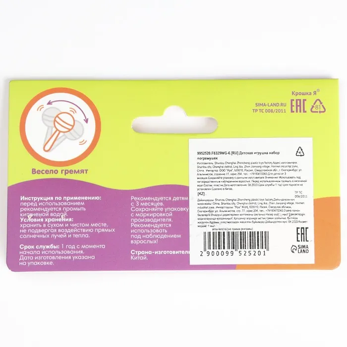 Кастаньеты Крошка Я «Музыка», 2 шт., музыкальный инструмент, от 3 мес., МИКС — Характеристики