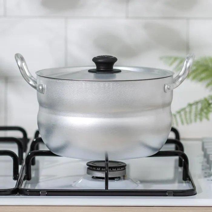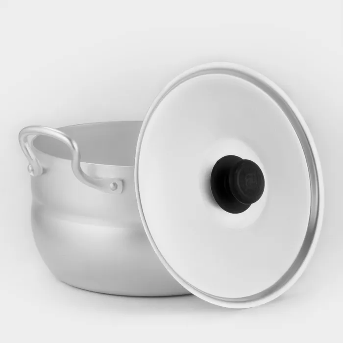 Кастрюля с металлической крышкой и двумя металлическими ручками на 2,5 литра изготовлена из чистого пищевого алюминия методом штамповки. Основные характеристики такой посуды: легкость, прочность, быстрый нагрев, безопасность и доступность. Кастрюля подходит к использованию на электрической, керамической, газовой плите, легко моется и имеет неограниченный срок службы.