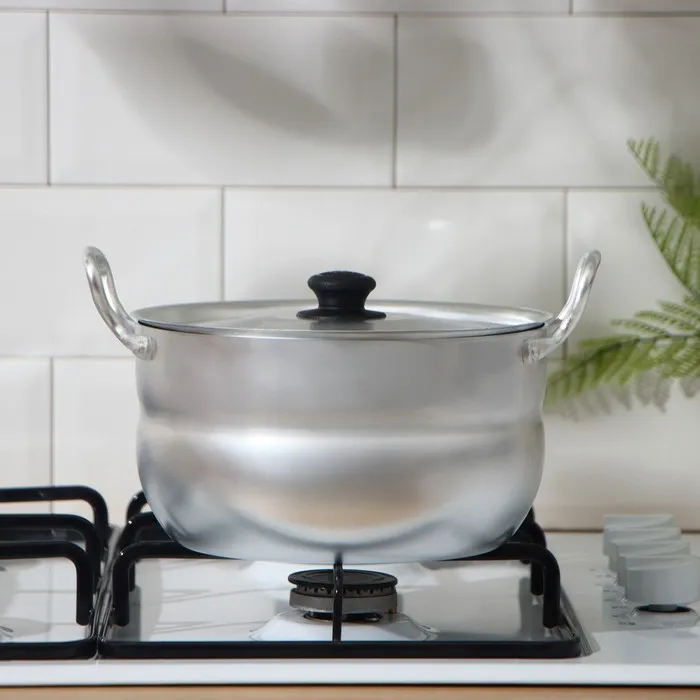 Кастрюля с металлической крышкой и двумя металлическими ручками на 3 литра изготовлена из чистого пищевого алюминия методом штамповки. Основные характеристики такой посуды: легкость, прочность, быстрый нагрев, безопасность и доступность. Кастрюля подходит к использованию на электрической, керамической, газовой плите, легко моется и имеет неограниченный срок службы.