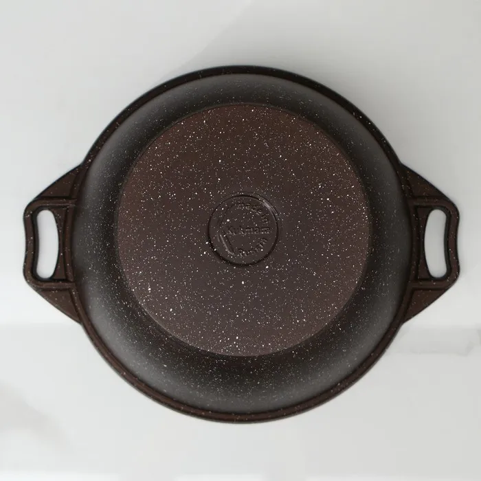 - Антипригарное мраморное покрытие наносится методом напыления, который гарантирует исключительную стойкость при эксплуатации.