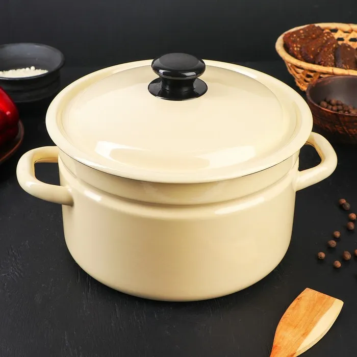 - Устойчивость к коррозии. Материал не ржавеет и не окисляется, что делает кастрюлю безопасной для приготовления пищи.