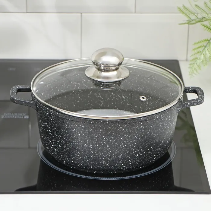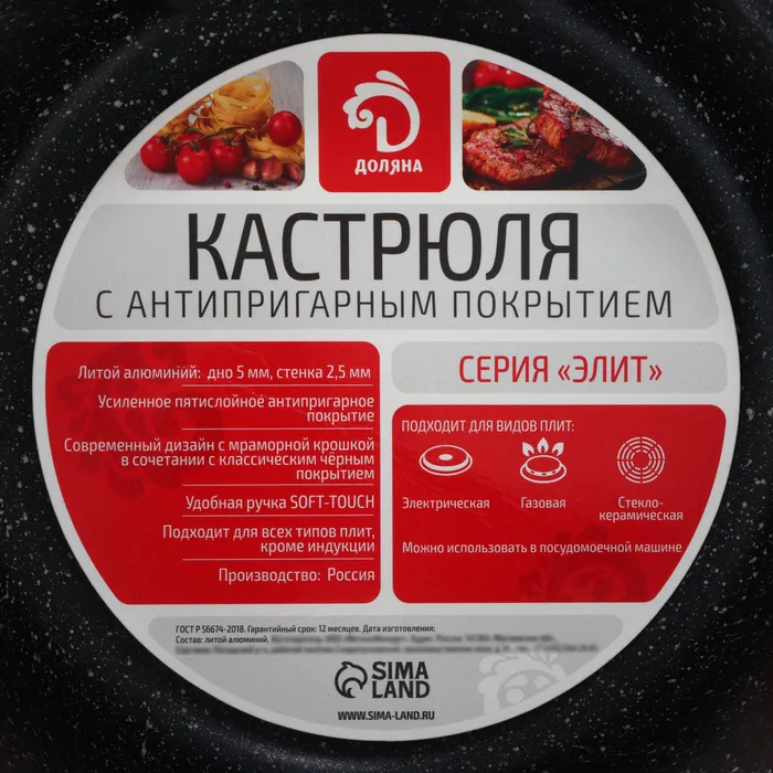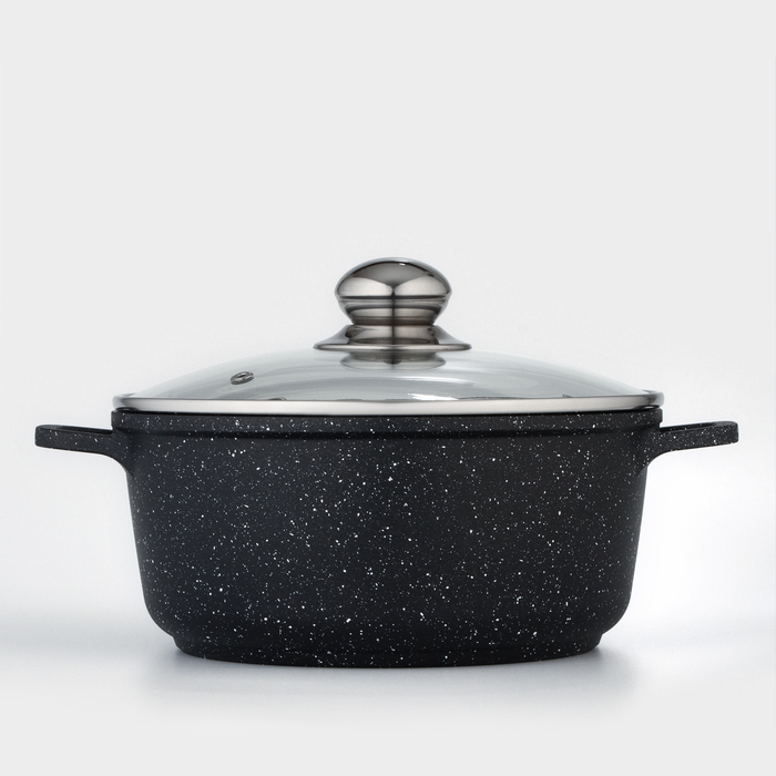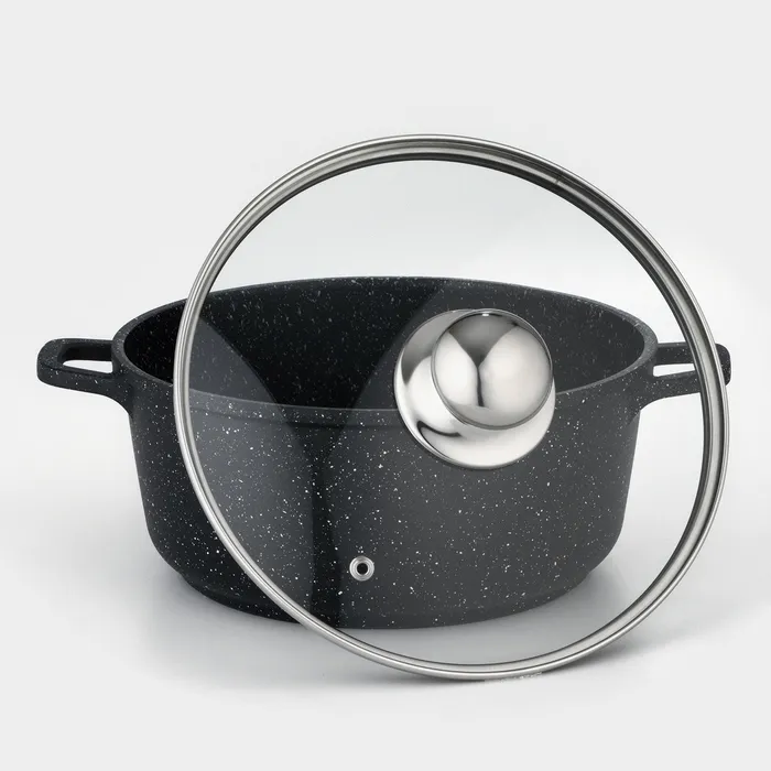 Кастрюля Доляна «Элит», 3.3 л, d=22 см, h=10 см, литые ручки, антипригарное покрытие, литой алюминий, чёрная — Характеристики