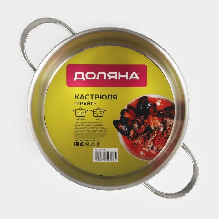 Кастрюля Доляна «Грейт», 2.8 л, капсульное дно, индукция, нержавеющая сталь — Характеристики