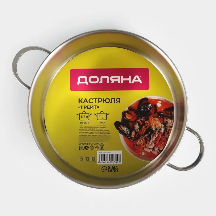 Кастрюля Доляна «Грейт», 5.7 л, капсульное дно, индукция, нержавеющая сталь — Характеристики