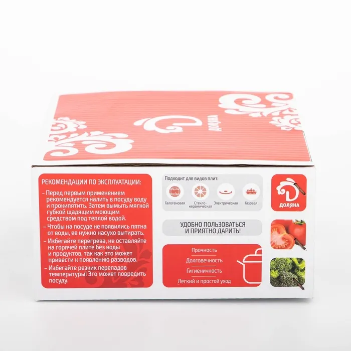 Кастрюля из нержавеющей стали «Доляна Роскошь» — идеальный выбор для вашей кухни! Трёхслойное капсулированное дно обеспечивает оптимальное распределение тепла и предотвращает пригорание пищи. Изготовлена из высококачественной нержавеющей стали, устойчивой к коррозии и долговечной. Имеет термостойкую стеклянную крышку и удобные ручки из нержавеющей стали. Подходит для всех типов плит и может быть использована в посудомоечной машине.