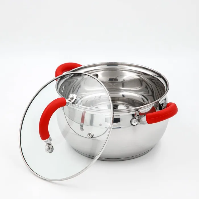 - Термостойкая стеклянная крышка плотно прилегает к кастрюле.