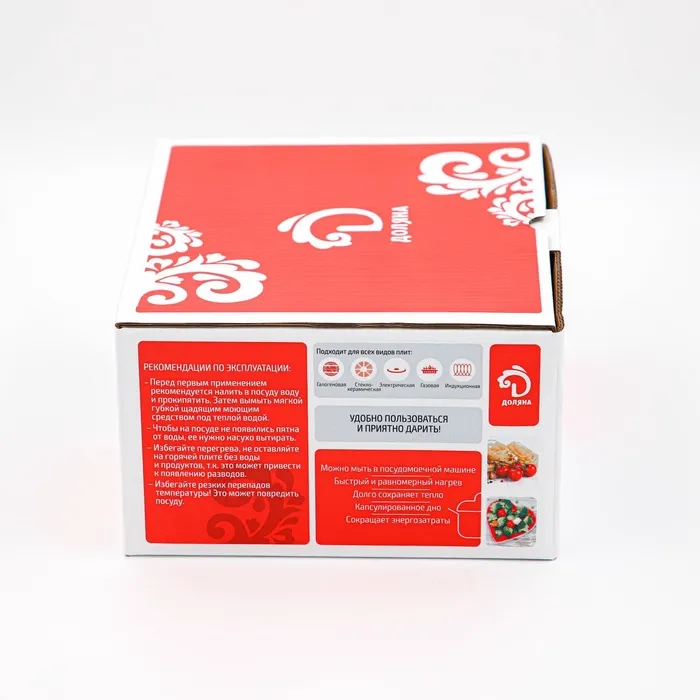 Подходит для всех типов плит и может использоваться в посудомоечной машине.
