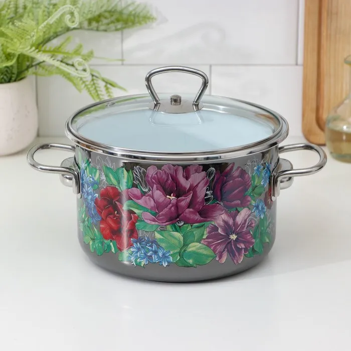 - Материал корпуса и крышки: эмалированная сталь сохраняет вкус и аромат продуктов, предотвращает пригорание и обеспечивает равномерный нагрев.