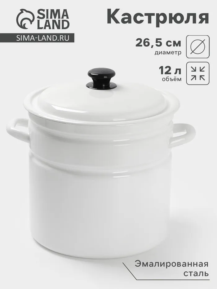 Кастрюля эмалированная, 12 л, с крышкой, белая — Характеристики