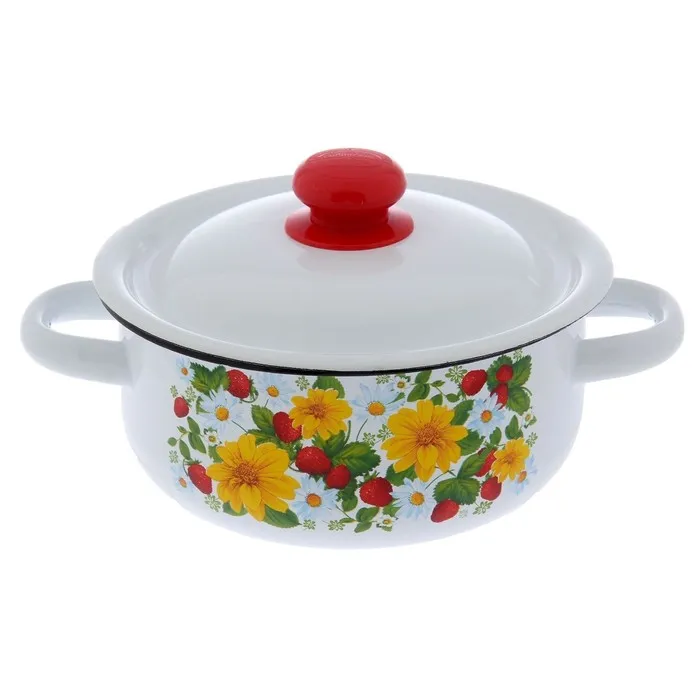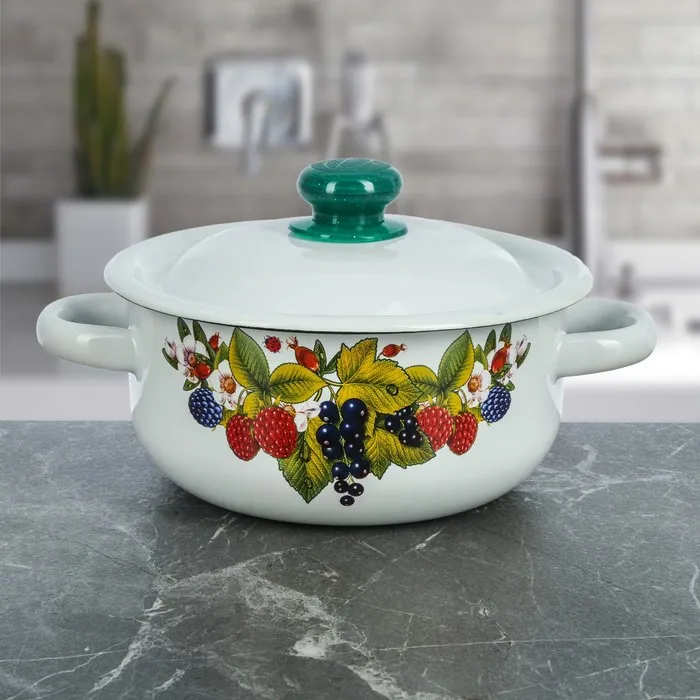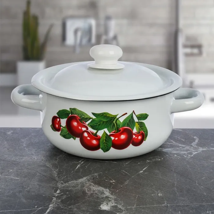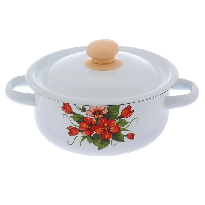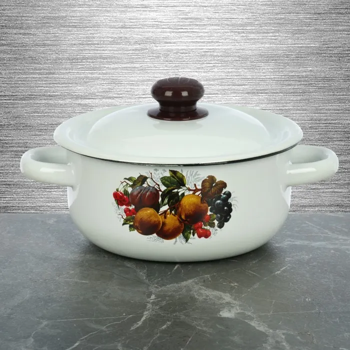 Кастрюля эмалированная 1,5 л, d=16 см, деколь МИКС, цвет белый — Характеристики