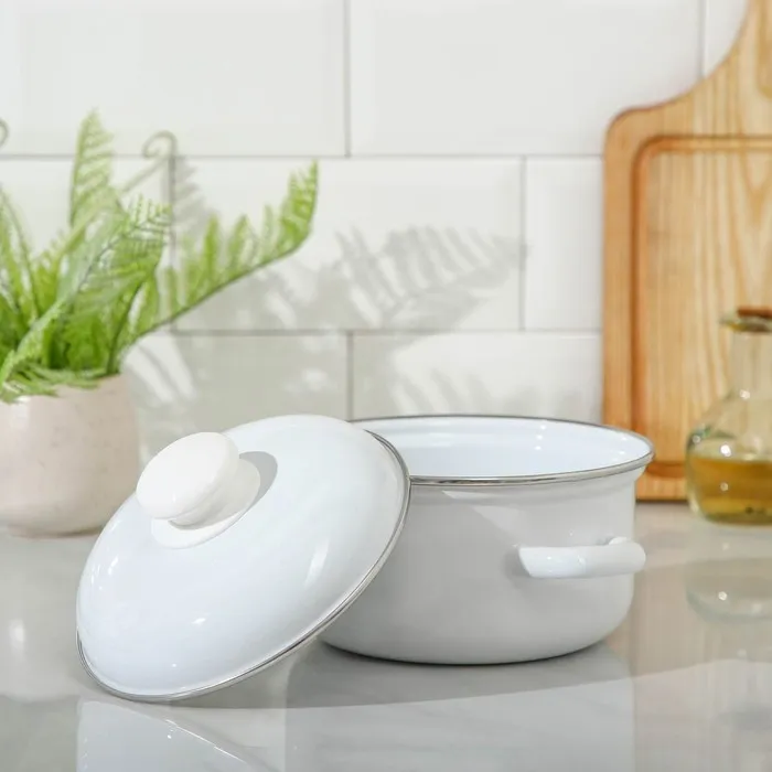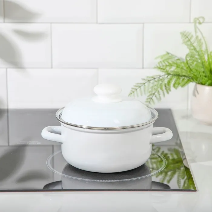 Кастрюля эмалированная, 1,5 л, d=16 см, h=9,5 см, индукция, цвет белый — Характеристики