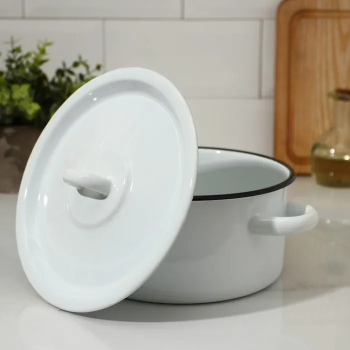 Эмалированные кастрюли — пример качественного кухонного инструмента, который на долгие годы займёт в инвентаре повара важное место. Изделия из прочного металла, покрытые равномерным слоем пищевой эмали, отлично подойдут для приготовления разнообразной и вкусной еды. Супы, блюда из отварных овощей и мяса, рагу, кисели и компоты лучше всего получаются именно в такой посуде.