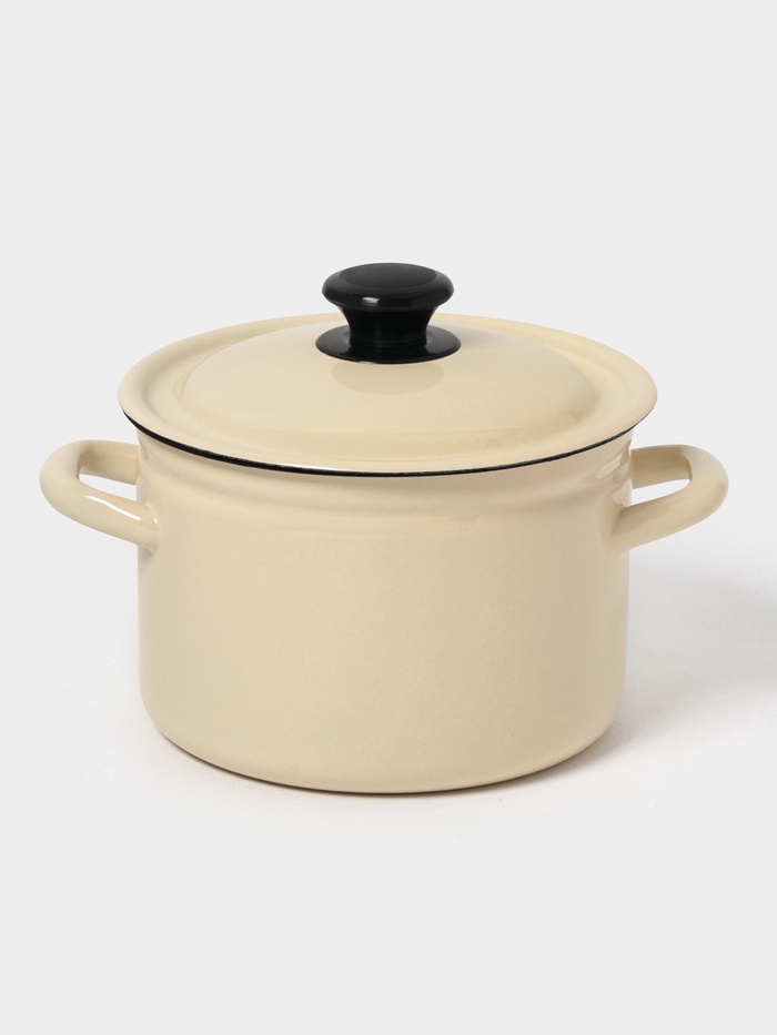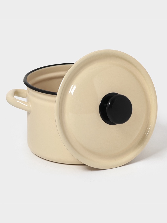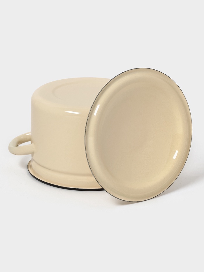 Цвет слоновой кости, гладкая поверхность без рисунка и крышка из той же эмалированной стали делают её практичной, лёгкой в уходе и неприхотливой в хранении.