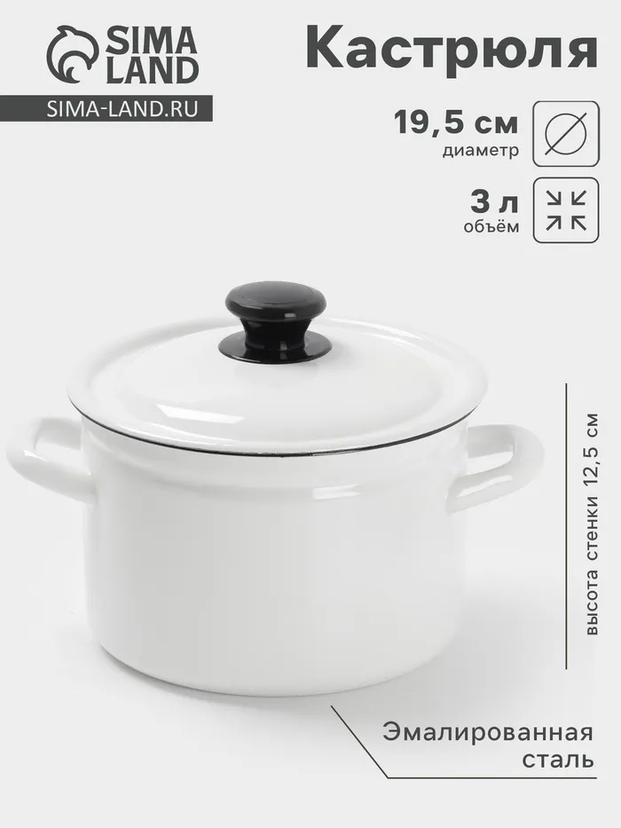 Кастрюля эмалированная, 3 л, с крышкой, белая — Характеристики