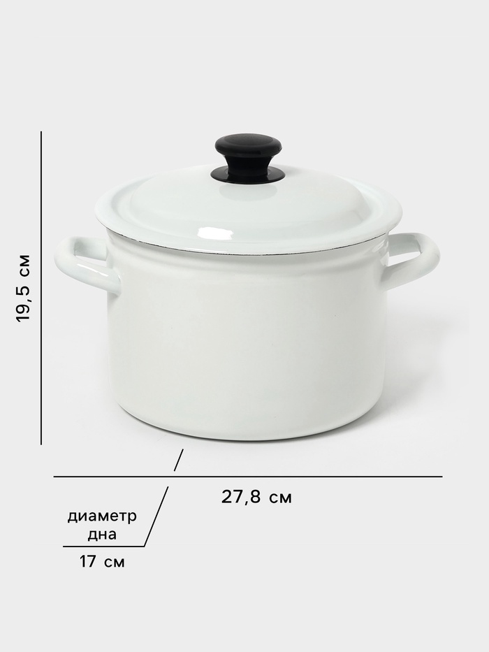 Кастрюля эмалированная, 4 л, d=21.3 см, с крышкой, цилиндрическая, без декора, белая — Характеристики