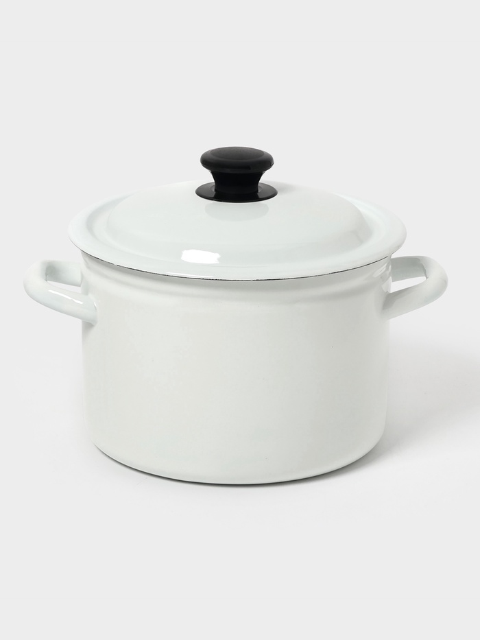Простая форма — максимальная польза. Цилиндрическая эмалированная кастрюля 4 л с крышкой — это посуда для повседневной готовки без лишних изгибов и уступов. Белая эмаль, аккуратный рисунок и крышка из того же материала делают её удобной на плите, в холодильнике и при хранении.