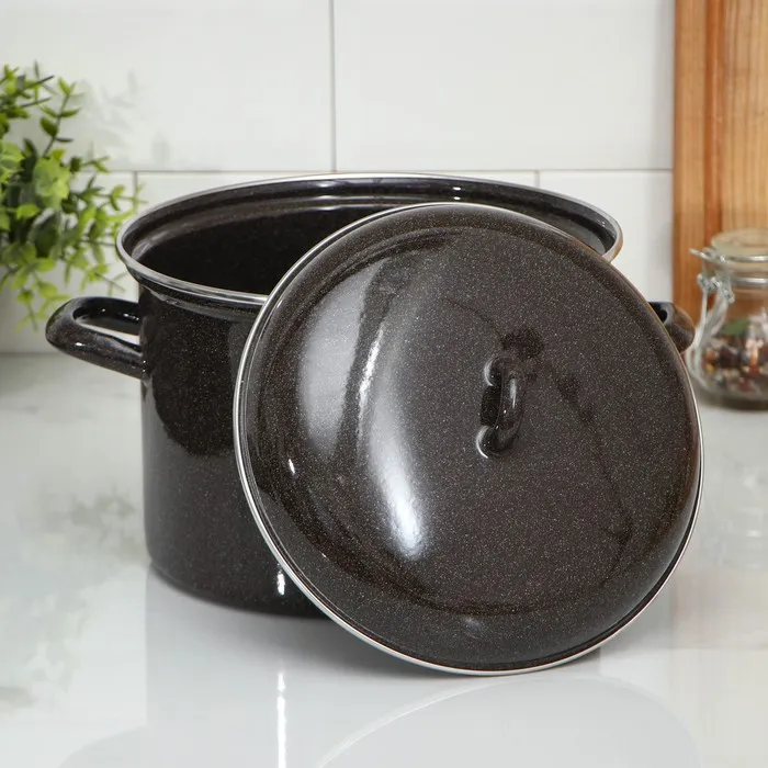 Эмалированная кастрюля отлично подходит для приготовления и хранения различных блюд. Традиционный инструмент пригодится дома и на даче.