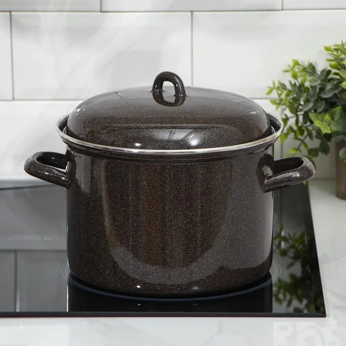 Кастрюля эмалированная, 4,5 л, d=22,5 см, индукция, цилиндрическая, индукция, цвет коричневый — Характеристики