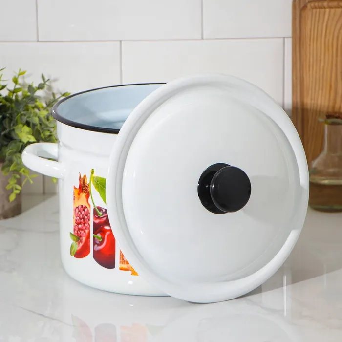 Кастрюля эмалированная, 7 л, d=24 см, цилиндрическая, деколь МИКС, цвет белый — Характеристики