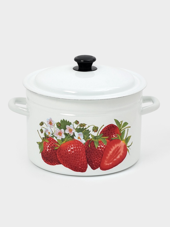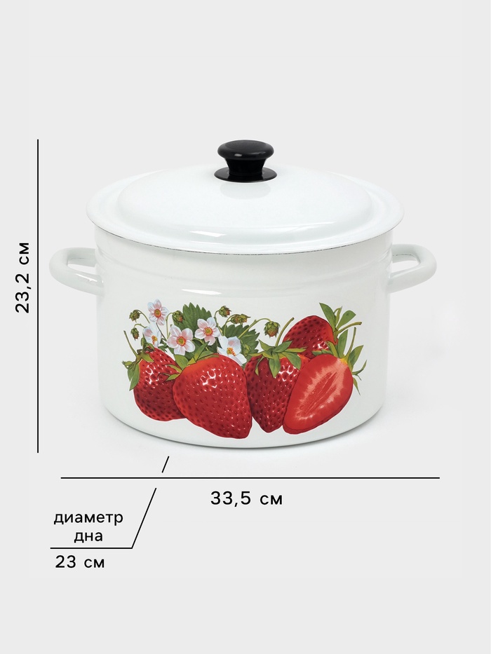 Простая форма — максимальная польза. Цилиндрическая эмалированная кастрюля 8 л с крышкой — это посуда для готовки без лишних изгибов и уступов. Белая эмаль, аккуратный рисунок и крышка из того же материала делают её удобной на плите, в холодильнике и при хранении.