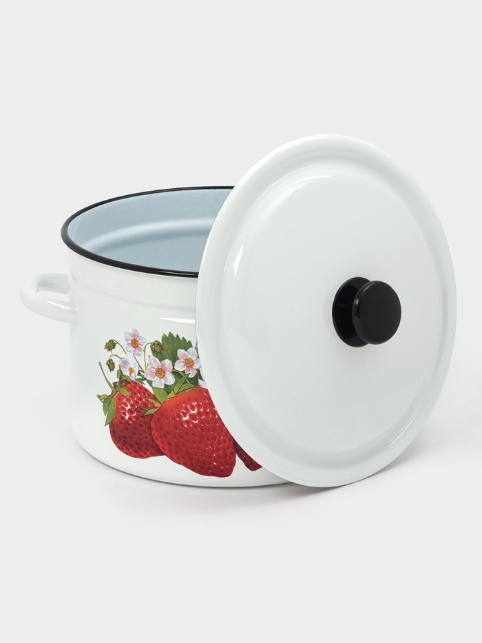 - Крышка из эмалированной стали: плотно прилегает, удерживает пар и не деформируется при нагреве. Моется вместе с кастрюлёй — без отдельных правил ухода.