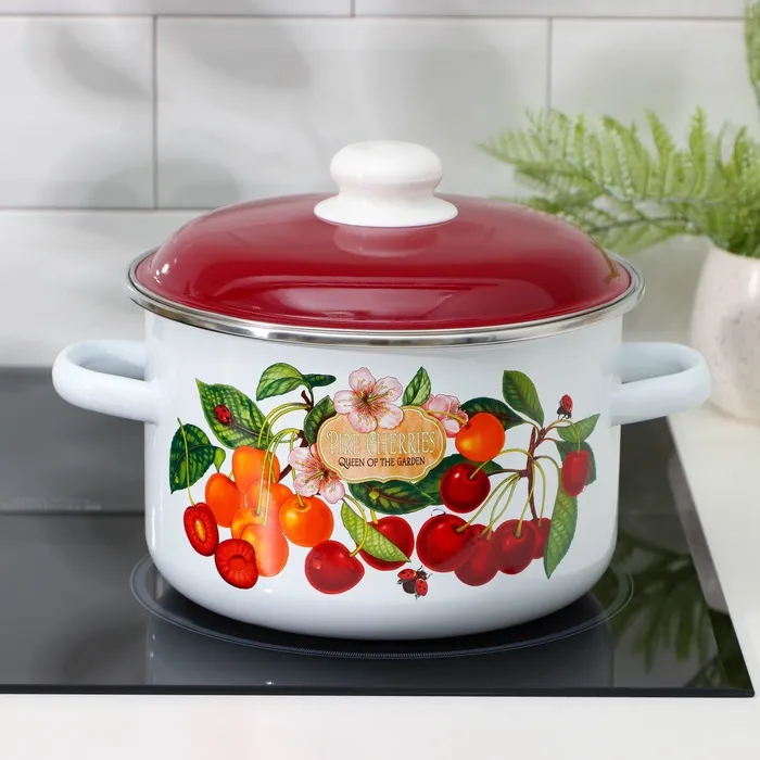Кастрюля эмалированная «Черешня», 4 л, индукция, цвет белый — Характеристики