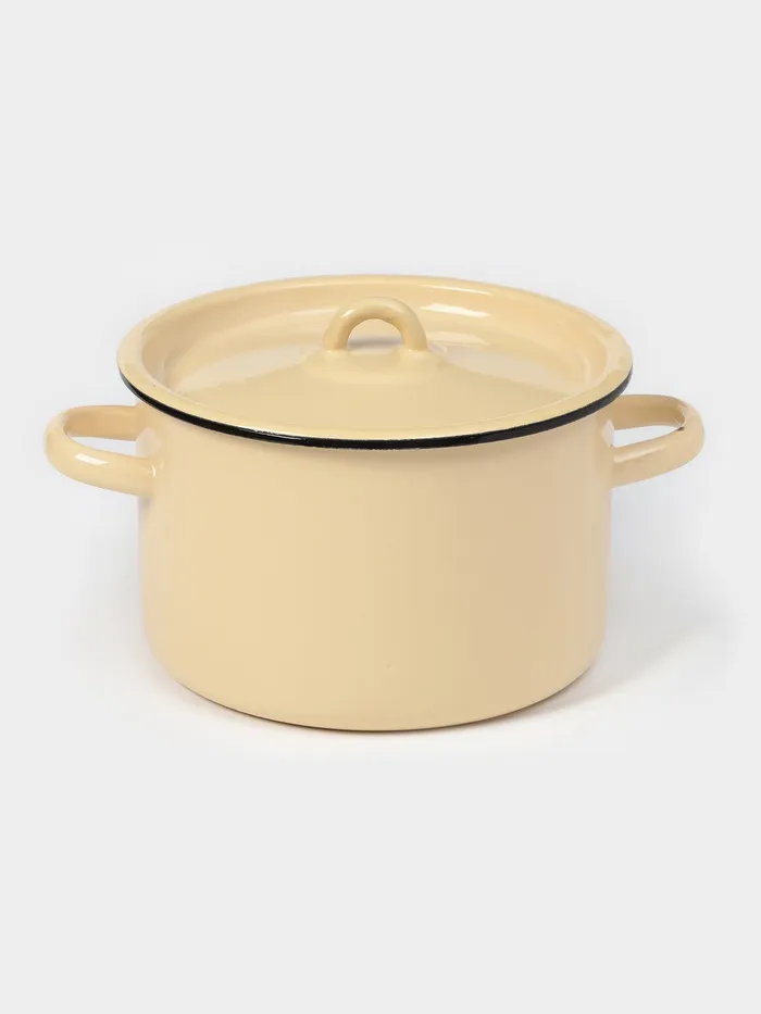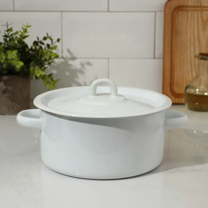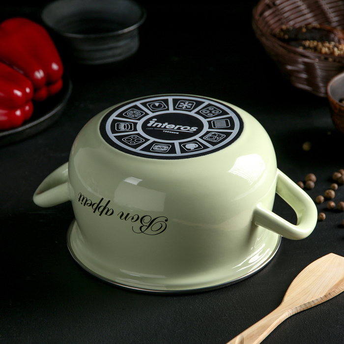 Эмалированная кастрюля Interos из качественной стали, покрытой двухслойной стеклокерамической эмалью, отлично подходит для приготовления и хранения различных блюд.