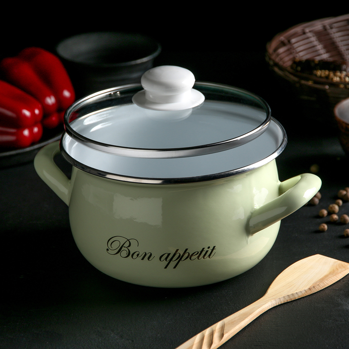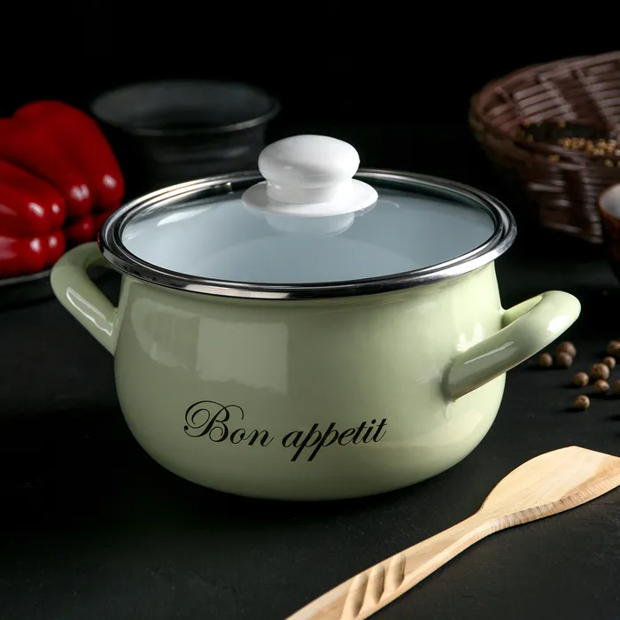 Кастрюля эмалированная «Лайм», 2.1 л, стеклянная крышка, индукция, цвет светло-зелёный — Характеристики