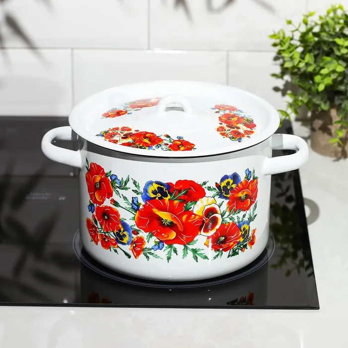 Кастрюля эмалированная «Маки. Мечта», 4.5 л, белая — Характеристики