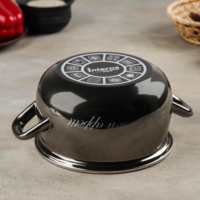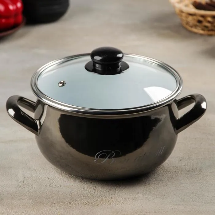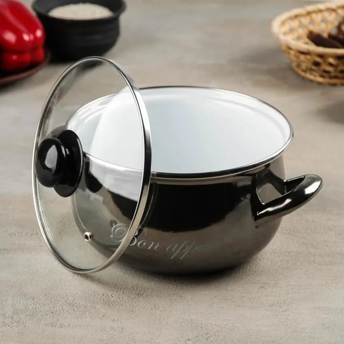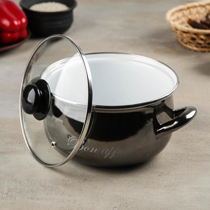 Кастрюля эмалированная «Металлик», 3,1 л, стеклянная крышка, индукция, цвет чёрный — Характеристики
