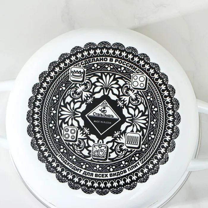 Кастрюля эмалированная «Мозаика», 2 л, d=18 см, индукция, белая — Характеристики