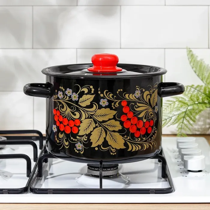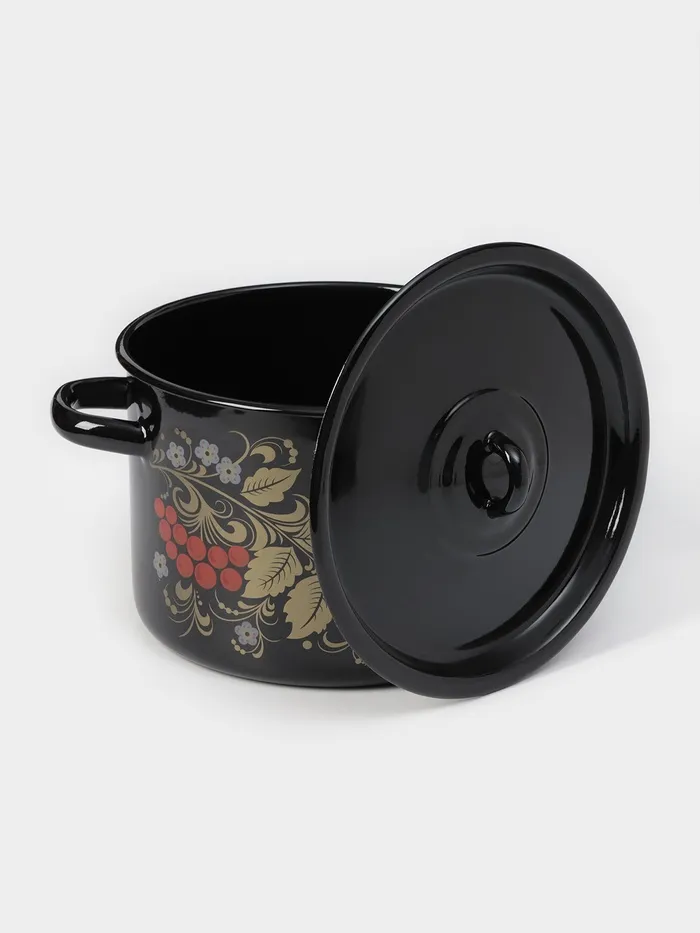 Кастрюля эмалированная «Рябина», 4.5 л, d=22 см, цилиндрическая, чёрная — Характеристики