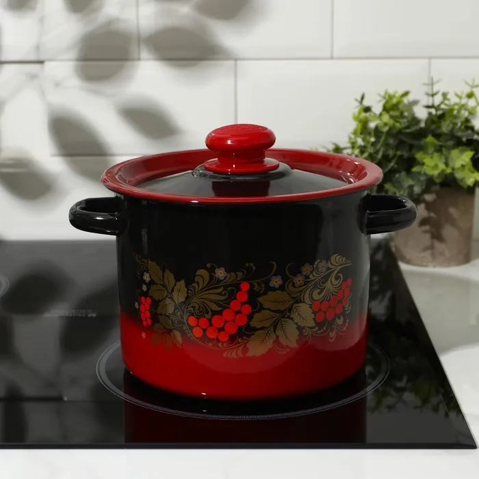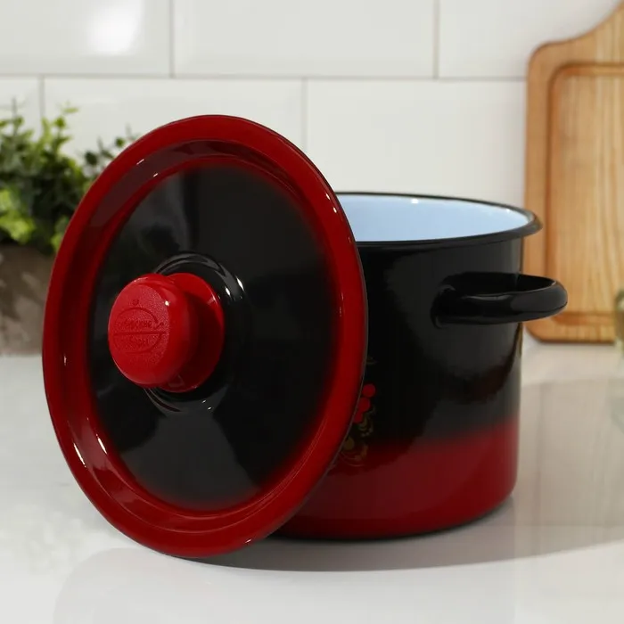 Кастрюля эмалированная «Рябинушка», 3,5 л, d=20 см, цилиндрическая, цвет чёрно-красный — Характеристики