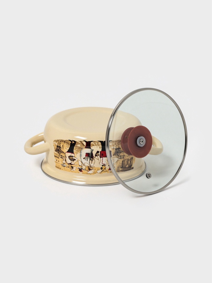 Кастрюля из эмалированной стали на 1,5 л — это практичная посуда с утончённым рисунком, созданная для повседневных блюд и особых моментов на кухне. Её нейтральный оттенок вписывается в любой интерьер.