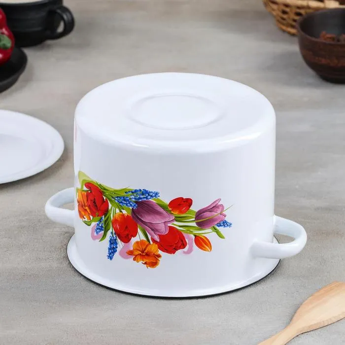 Кастрюля эмалированная «Тюльпан Май», 3,5 л, d=21 см, цилиндрическая, цвет белый — Характеристики
