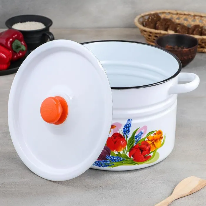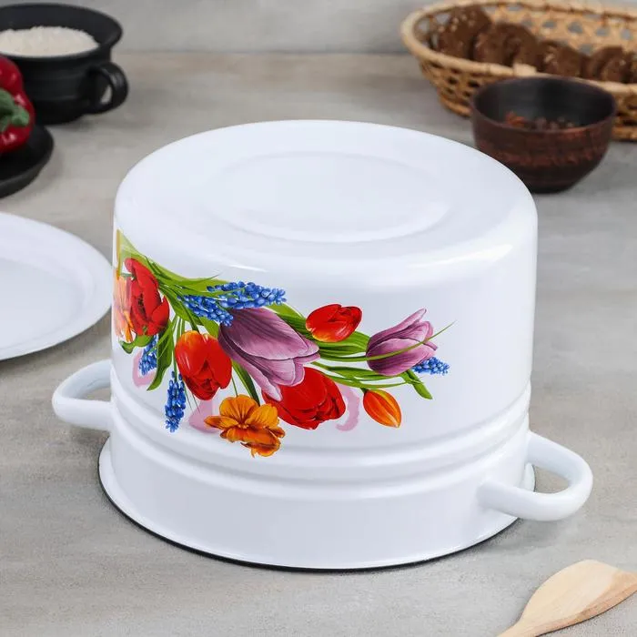 Кастрюля эмалированная «Тюльпан Май», 8 л, d=27 см, цилиндрическая, цвет белый — Характеристики