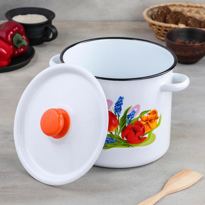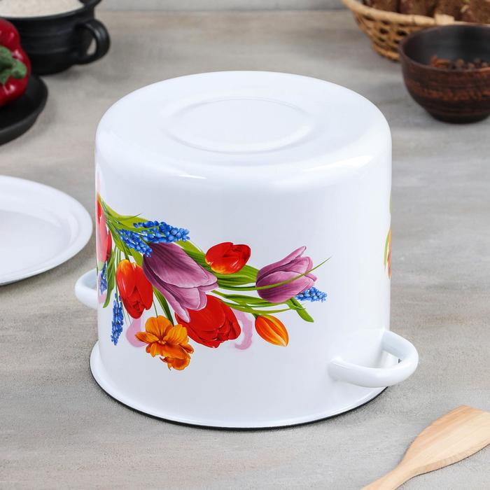 Кастрюля эмалированная цилиндрическая «Тюльпан Май», 5,5 л, с кнопкой, цвет белый — Характеристики
