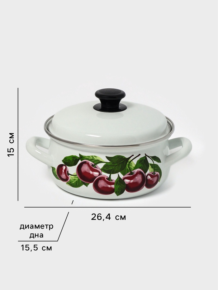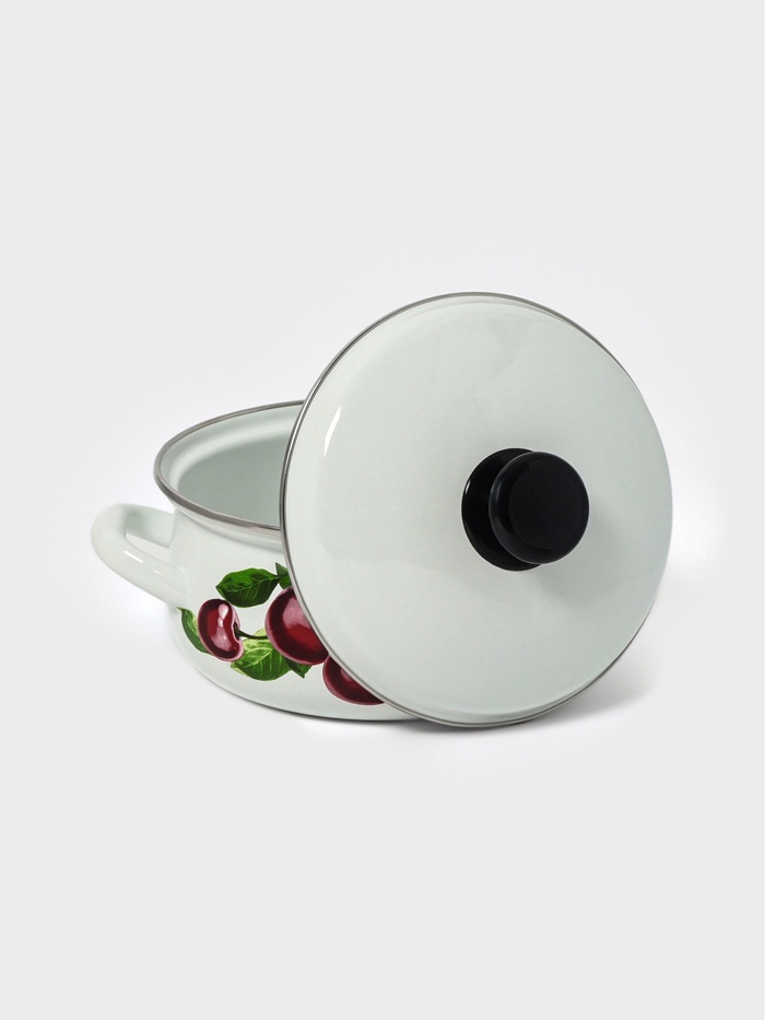 Кастрюля эмалированная «Вишнёвый сад», 2 л, d=20.4 см, белая — Характеристики