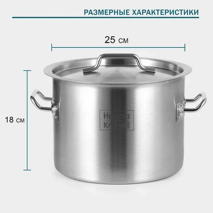 Кастрюля Hanna Knovell, 10 л, d=25 см, h=18 см, толщина стенки 0.8 мм, нержавеющая сталь — Характеристики
